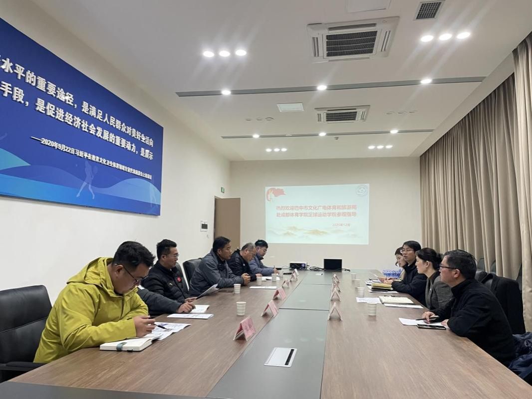 2025年12月9日,巴中市文化广电体育和旅游局党组书记、局长张杰,副局长陈明,人事科科长夏晓槐,市业余体校副校长刘统兵等一行前往成都体育学院足球运动学院开展专题调研。学校党委常委、组织部部长郑宇,教务处处长李明达,足球运动学院院长李畔,副院长李增民以及相关科室负责人参与了交流座谈。